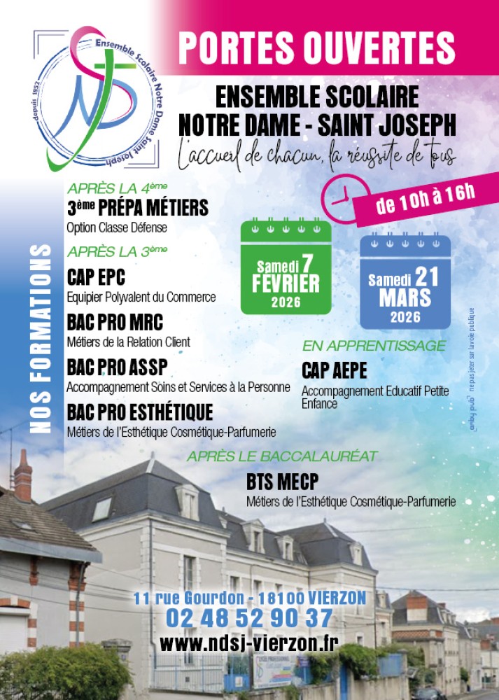 Voici les dates des portes ouvertes du Lycée Professionnel Saint Joseph, 11 rue Gourdon à Vierzon.
